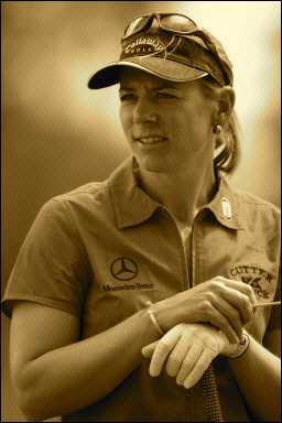 Long time coming but now we know: every tourney graced by this daughter of Thor is a Lindisfarne in waiting. Quiet, please. And we hush as somewhere between hip and shoulder she forges Callaway into divine hammer, bringing down the thunder that engraves her saga: Sorenstam. Who now can fathom—beyond the crows feet elaborating her purposeful gaze—the chipmunk-cheeked enthusiast in braces, so timid she would rather throw a match than endure the agony of a victory speech? All big-girl these days, she strides into history the quiddity of Nordic self possession. Here she comes marching down the fairway, posture immaculate, head high, Oakleys riding cap brim—perhaps it’s no coincidence her aspect suggests a panzer kommandant in focused but affable Sally Sock caricature. No doubt she’s frozen rivals in her crosshairs when things get serious and the shades come down. After the last ball disappears into the cup, little surprise when Ms. 59 hoists the trophy. But it’s then, when the microphones attack, that she parries with a charm belying the myth of icy golf robot from Stockholm. Somehow astonished to be champion again, she rebuilds the shaken egos of the vanquished and almost apologizes for victory—humble counterpoint to our age of hideous self-declaimers.