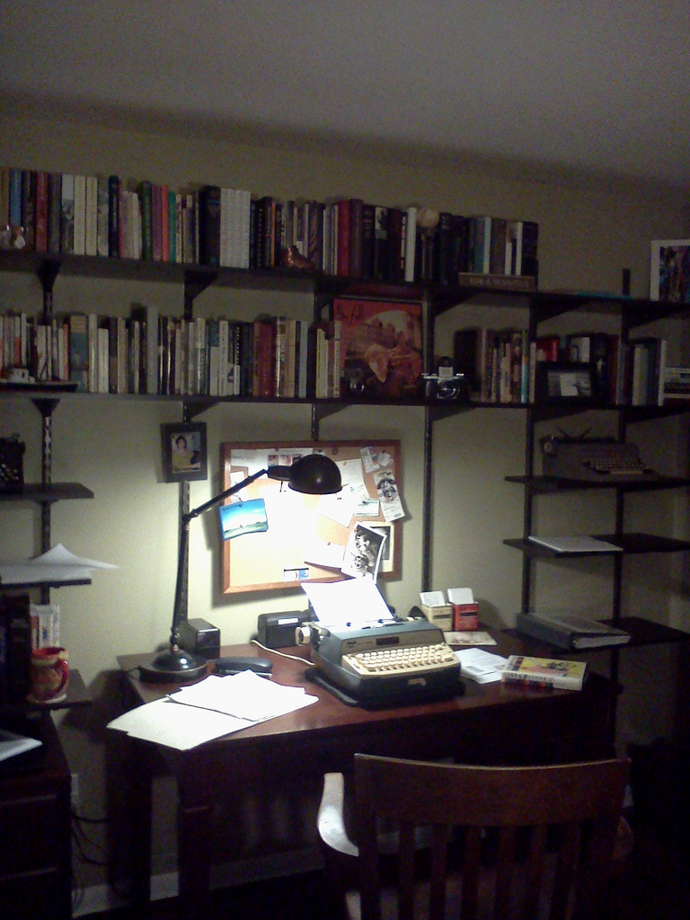 As painful as the fact might be, there really are no shortcuts to producing great literature, music, art–or anything else for that matter. I’m not saying the typewriter is essential for success as a fiction writer; nor am I saying the computer will damn you to mediocrity. But you must know yourself, the ways in which you fall prey to the temptation to take the easy way to mediocrity. In this instance, I think I share Auster’s view of the typewriter as a hedge against that temptation. And Auster’s a guy who produces the original manuscript by hand: with pen and paper. Read the whole Paris Review piece.